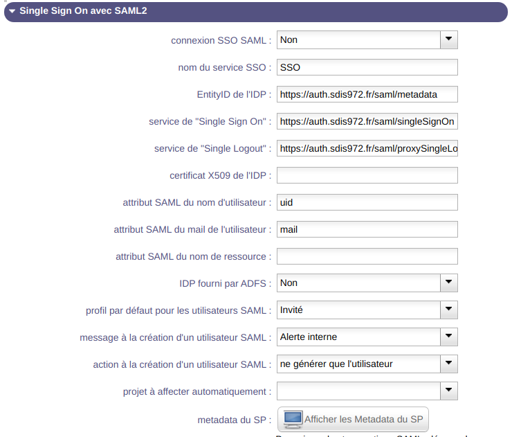In the Prorjeqtor configuration when i try to have SP Metadata