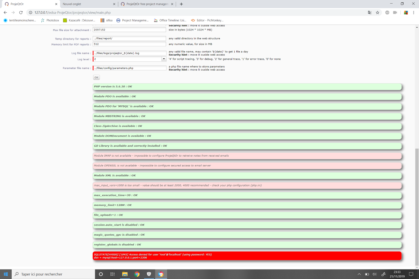 ProjeQtOr free project management software - Issue during configuration - ProjeQtOr
