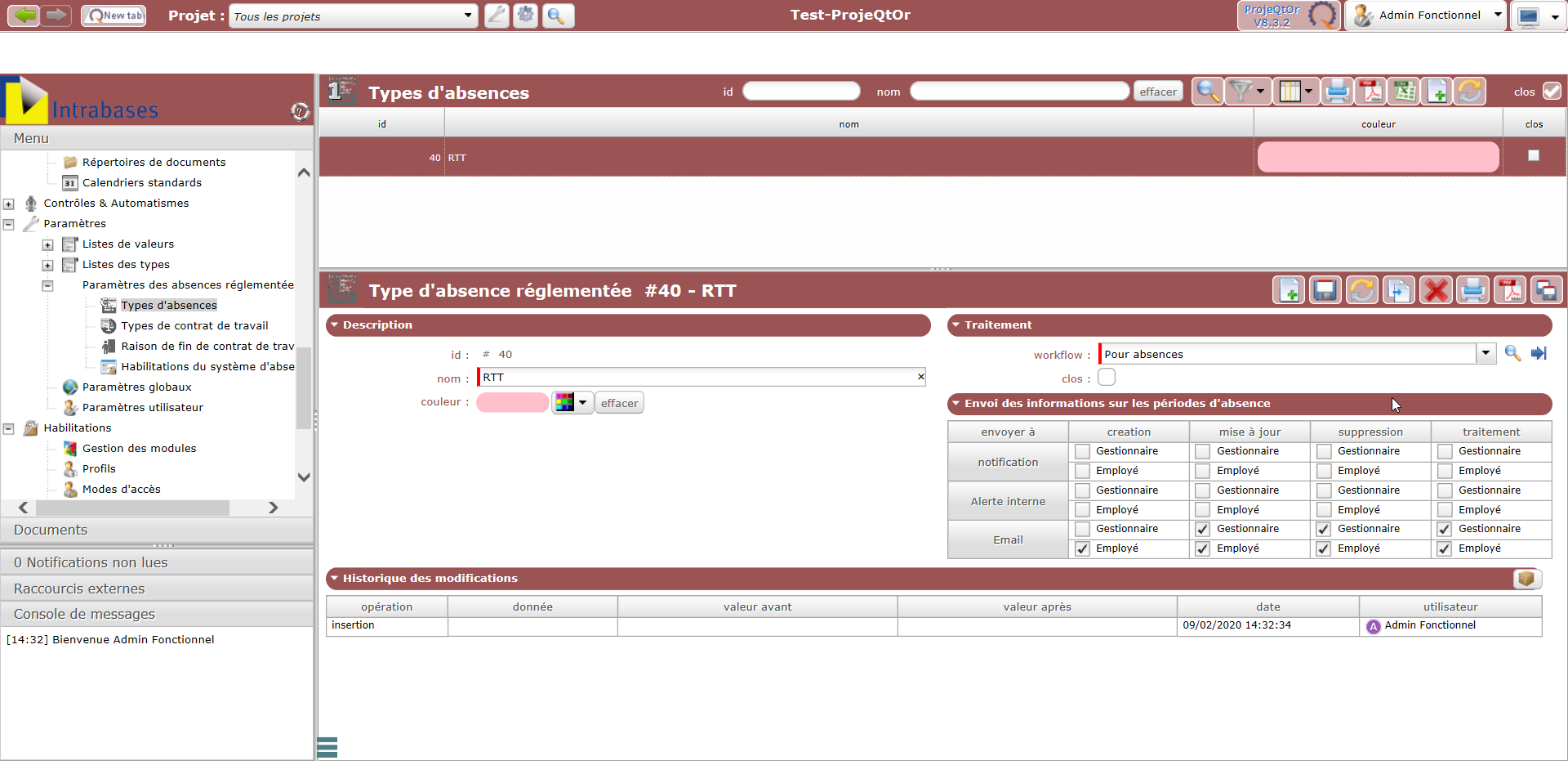 All the lines have quantity and left quantity empty, but if I don't delete those rights, he's able to declare leave periods, but as I delete them, he gets an error which is logic, but I thought it would be even more logic that he couldn't only see the types of leaves for which he has rights, in the leaves absence creation screen.