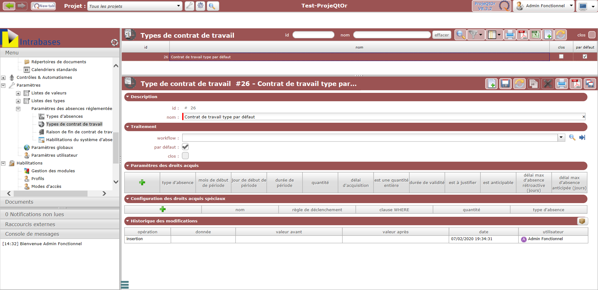 I've created a default contract type without any leave types and when I create a new ressource defined as un employee, he gets a default contract, but in the leave rights screen, I se one new line for each type of leave that I defined for all the other contracts.