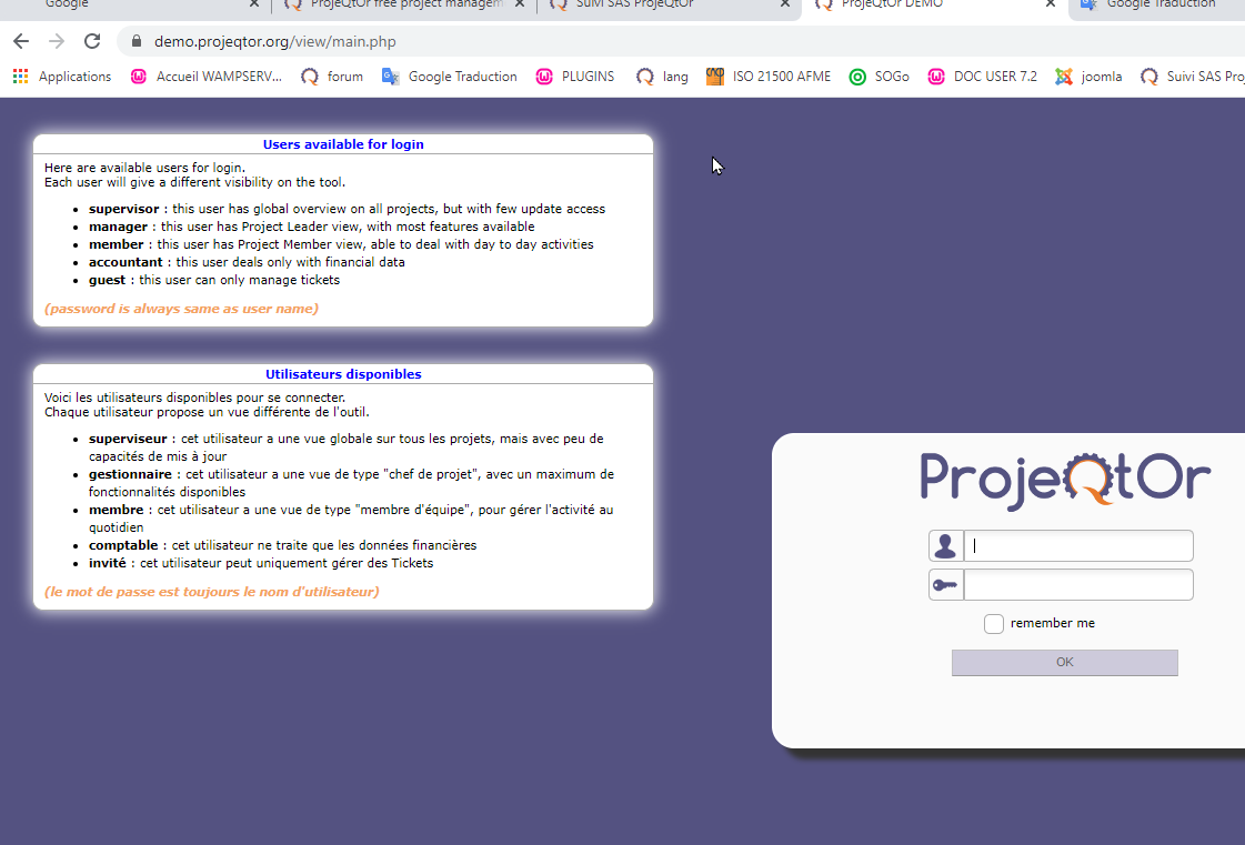 Hello, I started to learn Projeqtor, I just started business life and we need to use this program actively. I have no idea about this and my English is very weak. I signed up from the registration section. How do I login to the online demo section? I need to login and recognize the interface, I need this. I couldn't even access the getting started guide section . Please help. Good Work