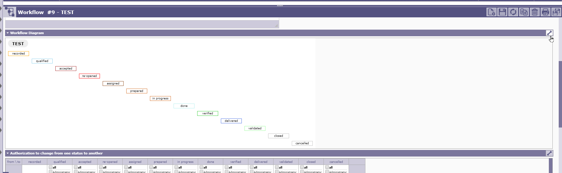give authorizations to change status by profil ( see attachment )