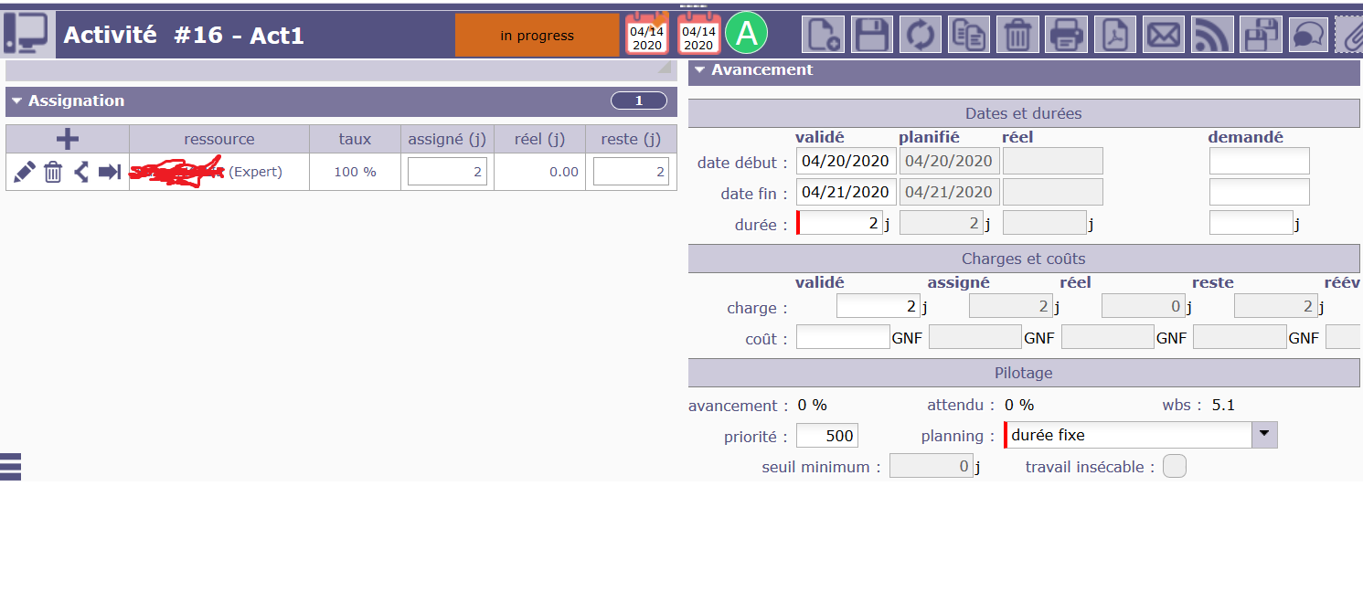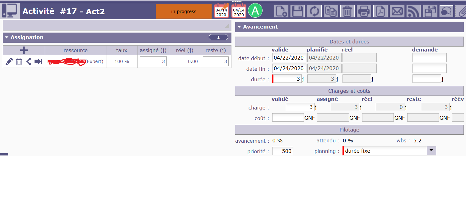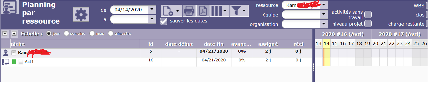 In the Ressource Planning view, i can see my ressource and the activity but i cannot see the start date of my activity and so the planification