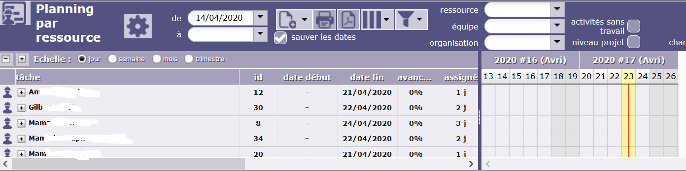 Is it normal to not have a "start date" for any of my ressource ont the ressource planning view ?