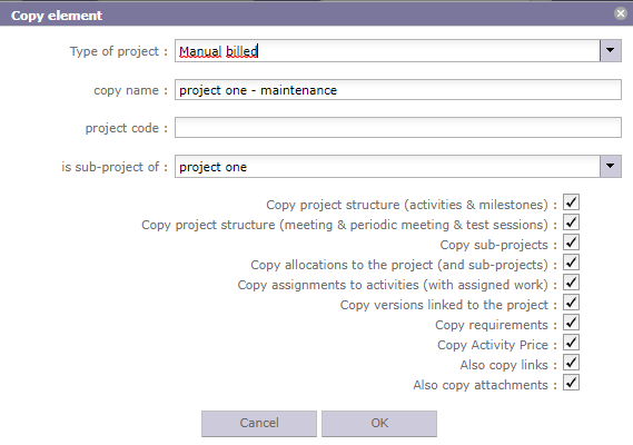 My business company being fairly proccessed with deadlines imposed between departments, we would have liked to have a basic schedule to be duplicated automatically at each project start.