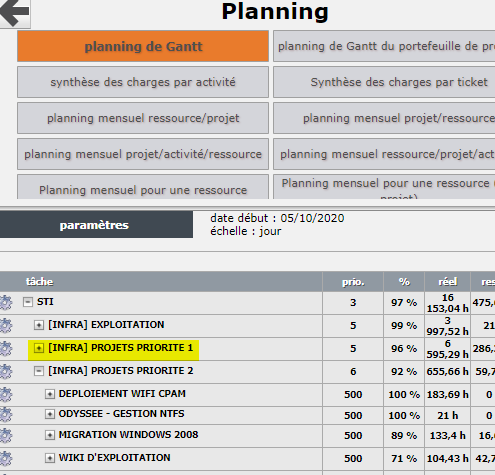 ProjeQtOr free project management software - Expend project on reports - ProjeQtOr