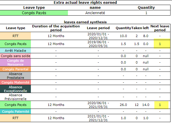 Knowing that it's january, 19th and I created a Contract CDI with the classic reglemented leave period in France, how can I get this :