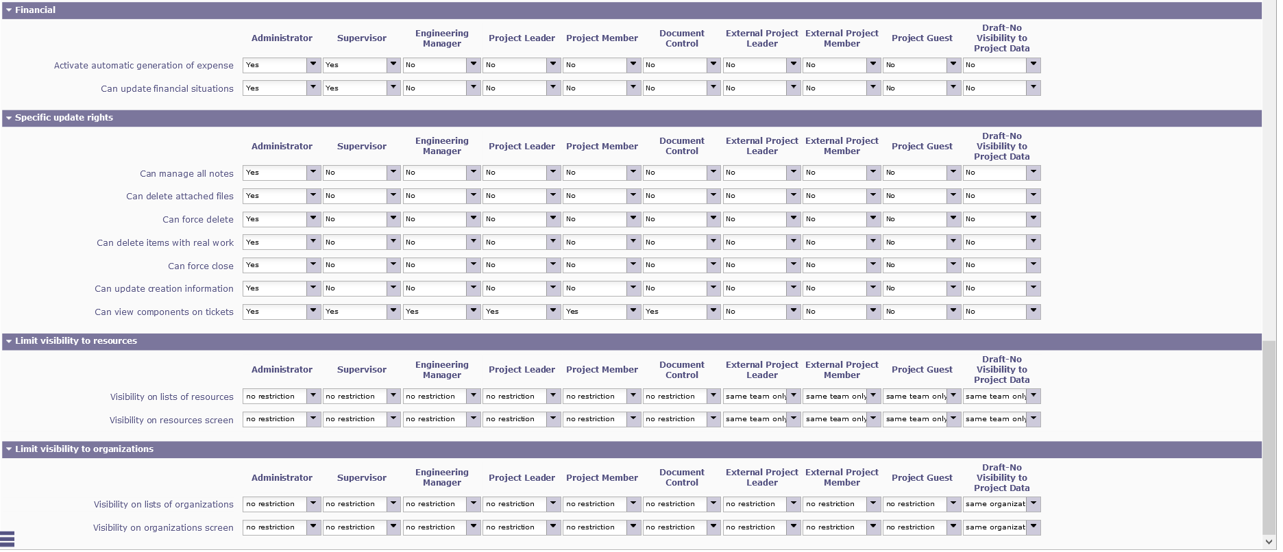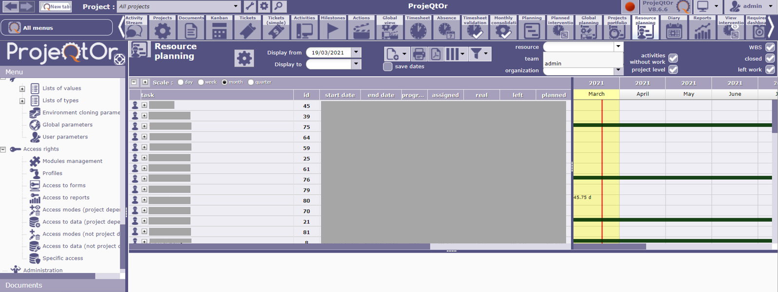 I enabled all access rights for admin. I also tried to log in as another user with the same profile 'admin' and a few users shown in the limit display dropdown list, while actually more users are shown in the gantt chart area. I suppose those resources shown in the gantt chart areas should be available in the limit display dropdown list?