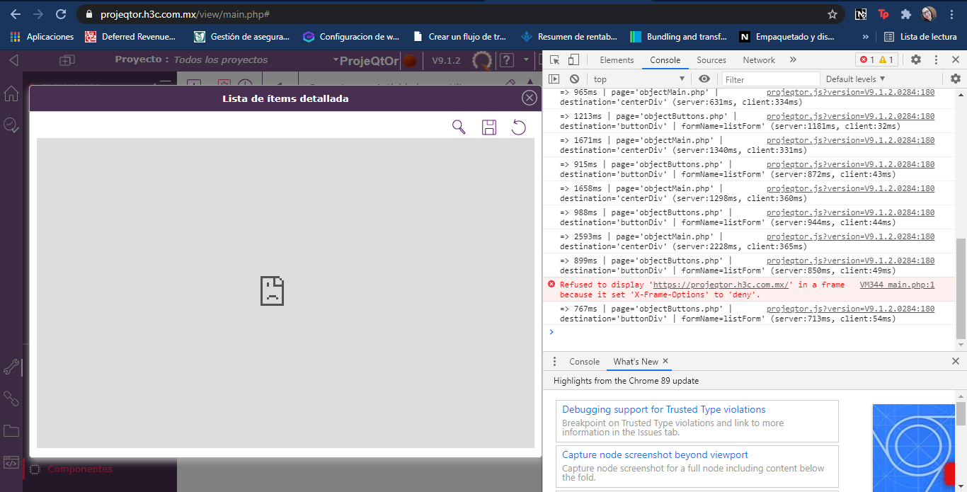 Try and disable it of configure it so that projeqtor iFrames are not blocked.