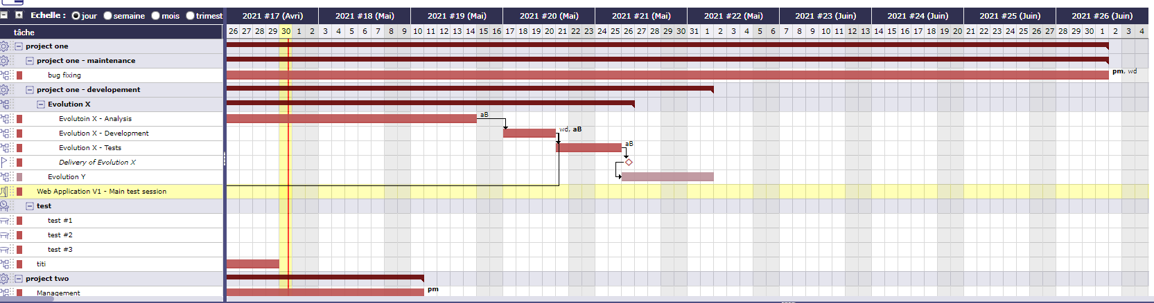 I found an older post wich said that it is not possible to show the name of an activity or project on the bar in the Ganttchart.