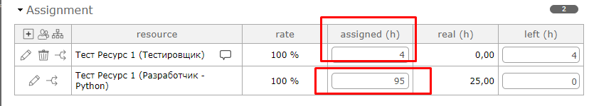 For example, we have one resource on a project with two different functions on it (team leader and Java developer). So, 20% of the time the resource spends to team lead and 80% to develop a program.