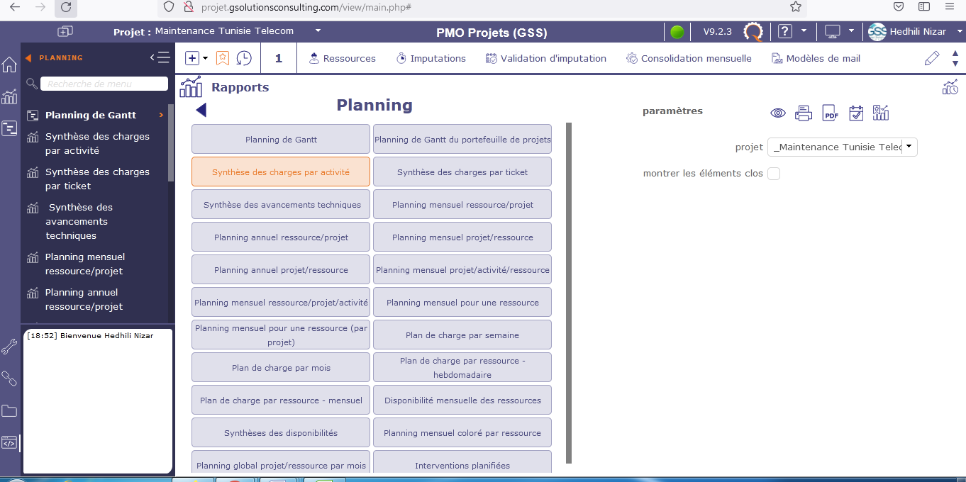 In the section tools of accès aux écrans we have only mention légale et environnement de simulation we do not have planned reports ,