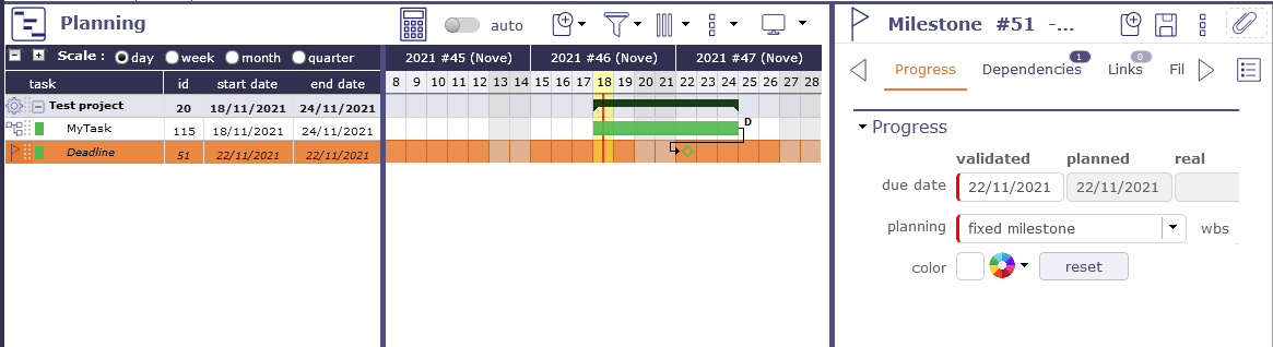 ProjeQtOr free project management software - Planning with fixed milestones - ProjeQtOr