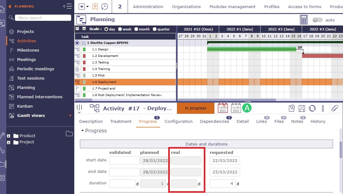 I tried my way to check How / When Real Start & End Date updates in Planning->activity->progress section, but I didn't find a way.