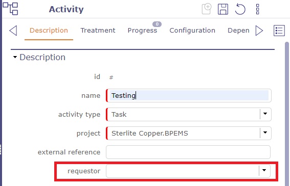 I am facing an issue when adding requestor in activity->description in project member level login (with manager rights in "access to data (Project dependant)->work-> activities->project member"). It is not showing + or Search sign or any record in dropdown! Please find the attachment for reference.