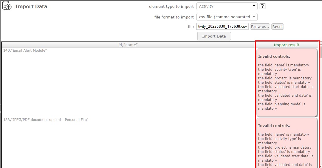 Please find attachment (export_Activity_20220830_170638.csv), what I tried to import for my purpose, but it gives error for all rows in csv file after clicking on import data button. Please refer attachments. I even tried with choosing all mandatory fields too but not succeed with my task.