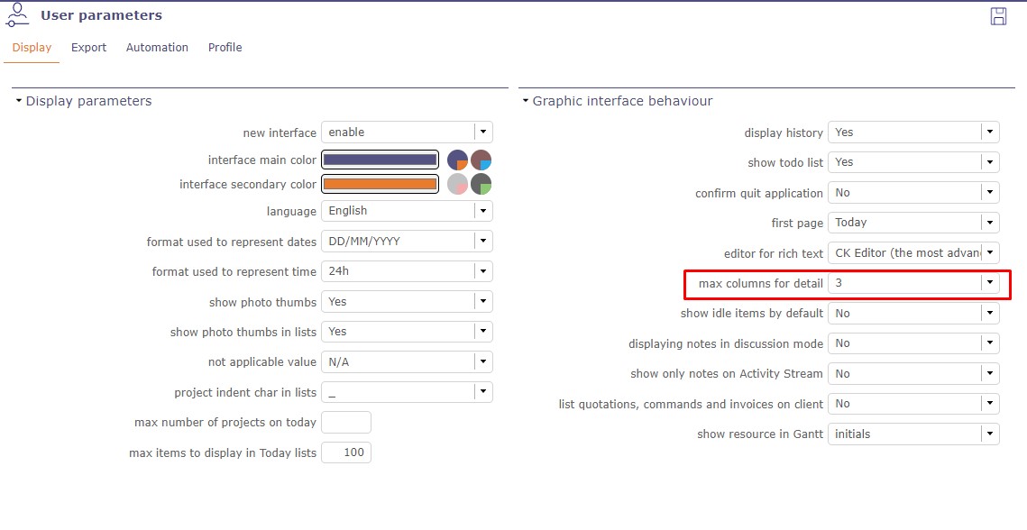 I need to understand functionality of "max columns for detail" in User Parameter. Please elaboration with example, so i can use it properly. I don't get it that how to check it after change parameter in it.