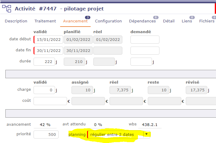 Is there a setting to offer "regular between 2 dates" planning for activities in the "Progress/Planning" tab instead of the "As soon as possible" value?