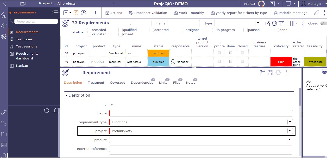 I was checking for mandatory of projects in each of modules in projeQtOr.