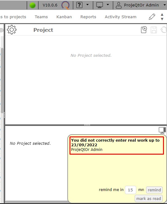 ProjeQtOr free project management software - Alert comes for filing timesheet - ProjeQtOr