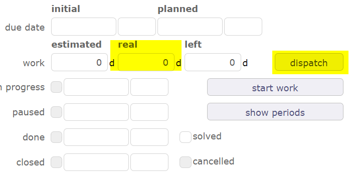 Fill the real work on the ticket screen. If you enter it in the real field, the time will be charged for you (user who enters) and on the current date.