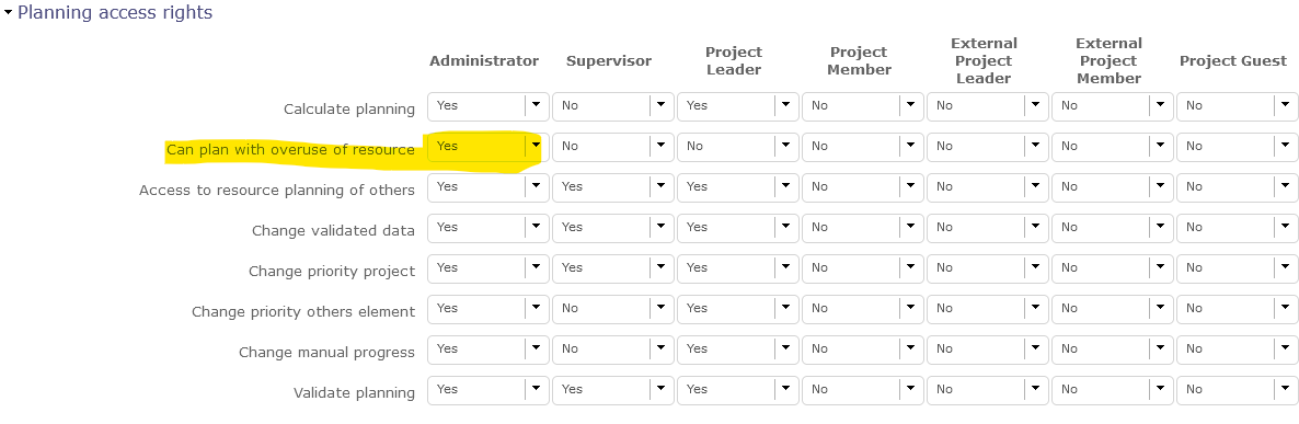 As an admin, you can change that in the Specific Access screen, section Planning access rights, for the profiles you want.