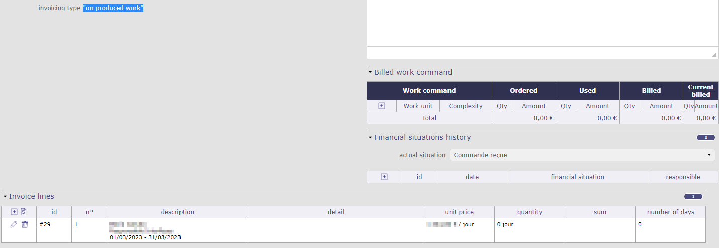 I'm trying to create a invoice of the type "on produced work" over a month where the timesheets are all validated, for the project in question.