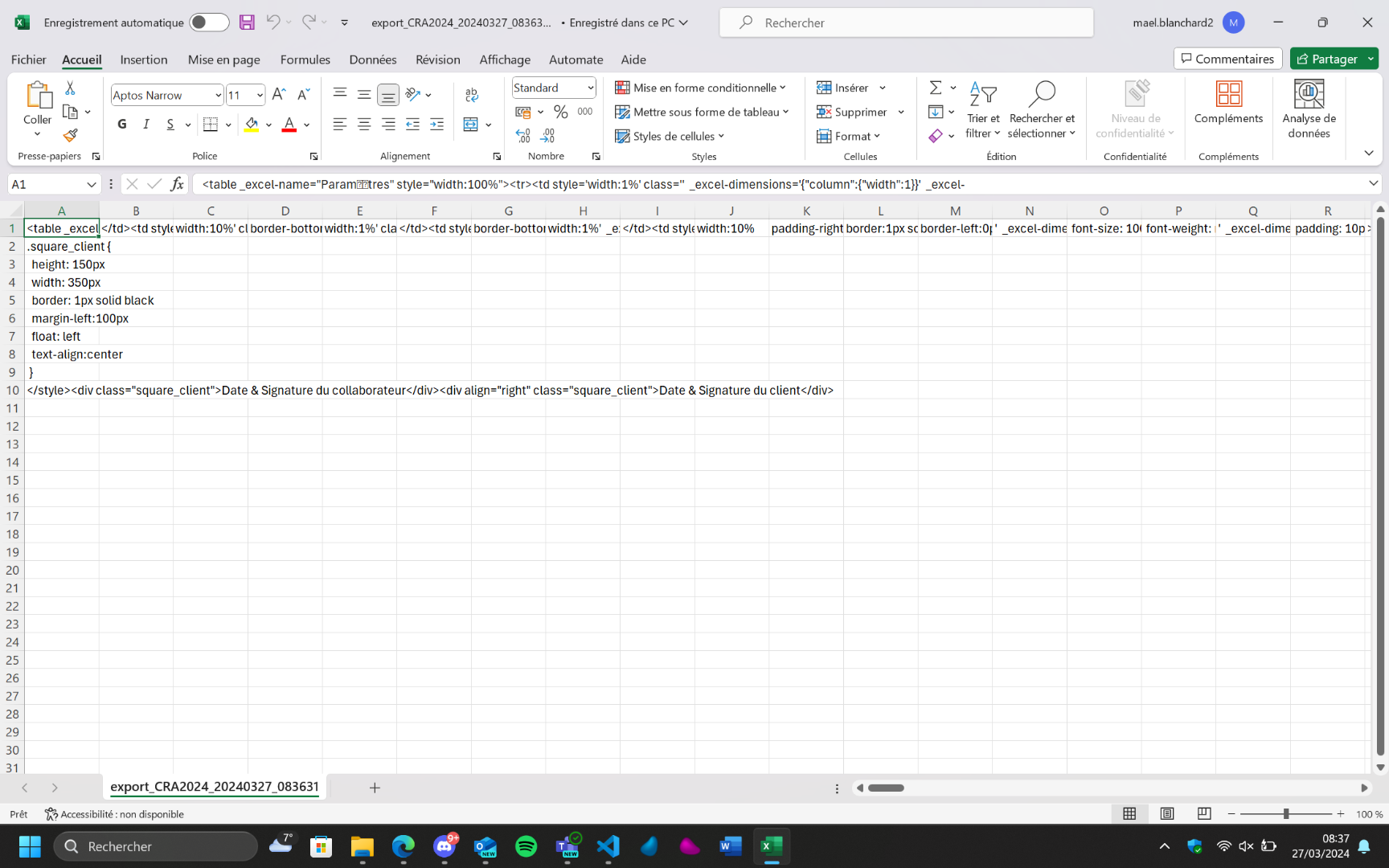 I have a report that I would like to export to CSV, but it works, it exports a file to CSV but the content of this CSV file is none other than HTML, which seems quite strange to me since in the original reports of Projeqtor, the export in CSV works.