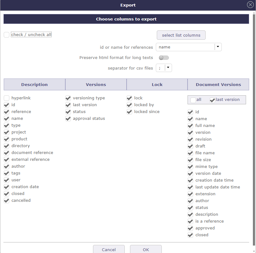My asking was unclear. For my document management, I use data import to firstly create documents into excel then import them into iPMP. This step is ok, I successfully create my documents with this methode. In a second step, I would like to link documents between them with data import method. As you explain, I know how link documents between them directly from iPMP HMI however I would like to perform that only with an import. For example, is it exist a column entitled <Id (linked element)> to put in my csv file for import ?