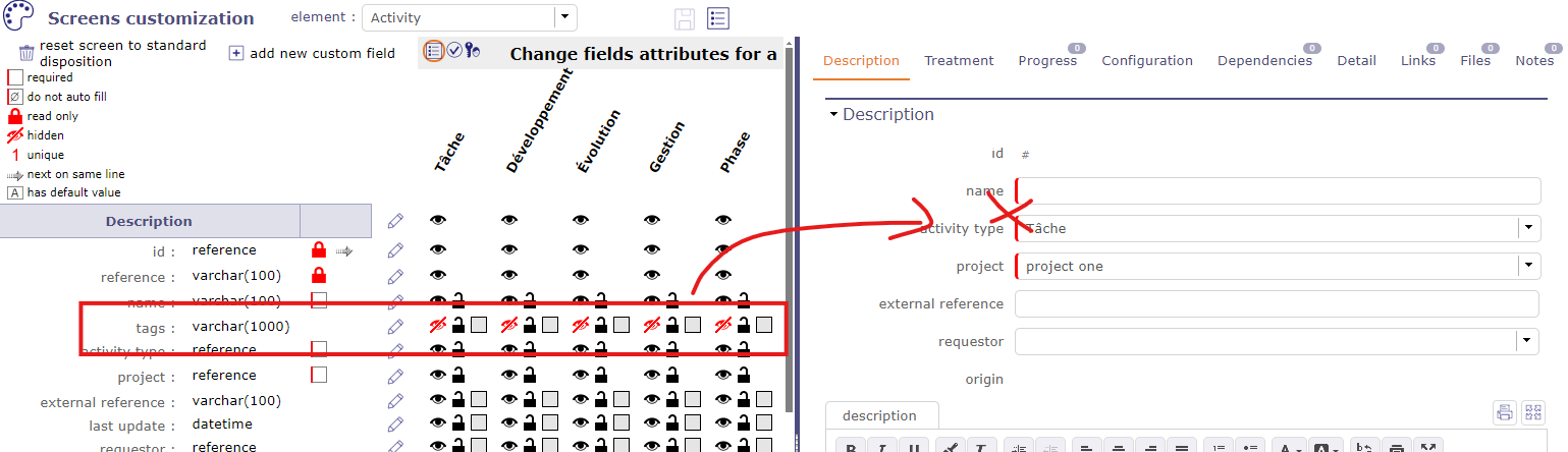 but hidden for each profile or type... and the tags field disappears well