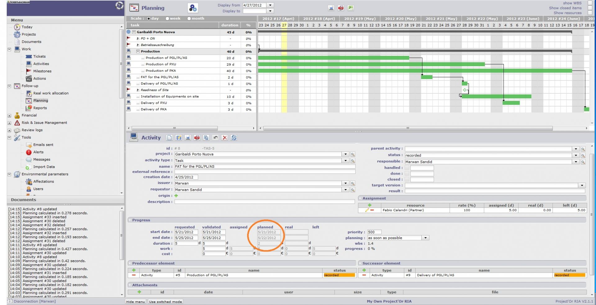 But still I can't understand why is the planned end date for the 22/05. The ressource used does't have any other affectation for the same periode. The point also is that when I affect another resource, the planned end date will be 25/05 and the calculated and shown planned duration is correct. How can we explain it. See 1st attached.