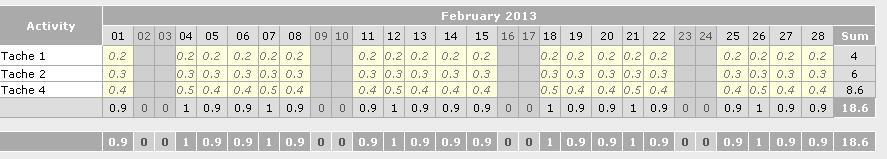 What I do not understand is that during the month of February to early March there are activities 1, 2, 4 => There is the problem (total = 0.9 or 1).