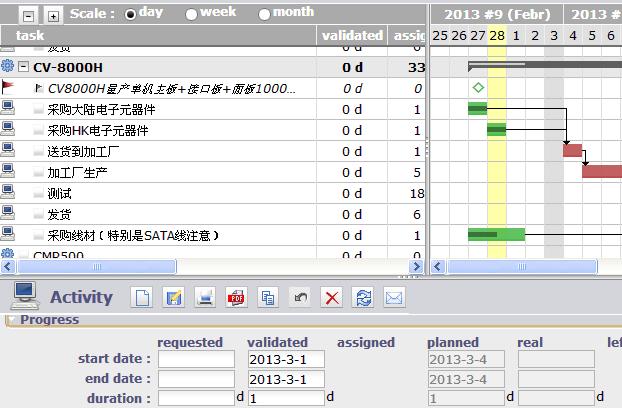 Resource should have no availability left, so planning finished "%SATA%" activity on 2013-3-1 (as soon as possible).