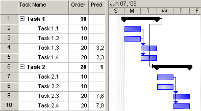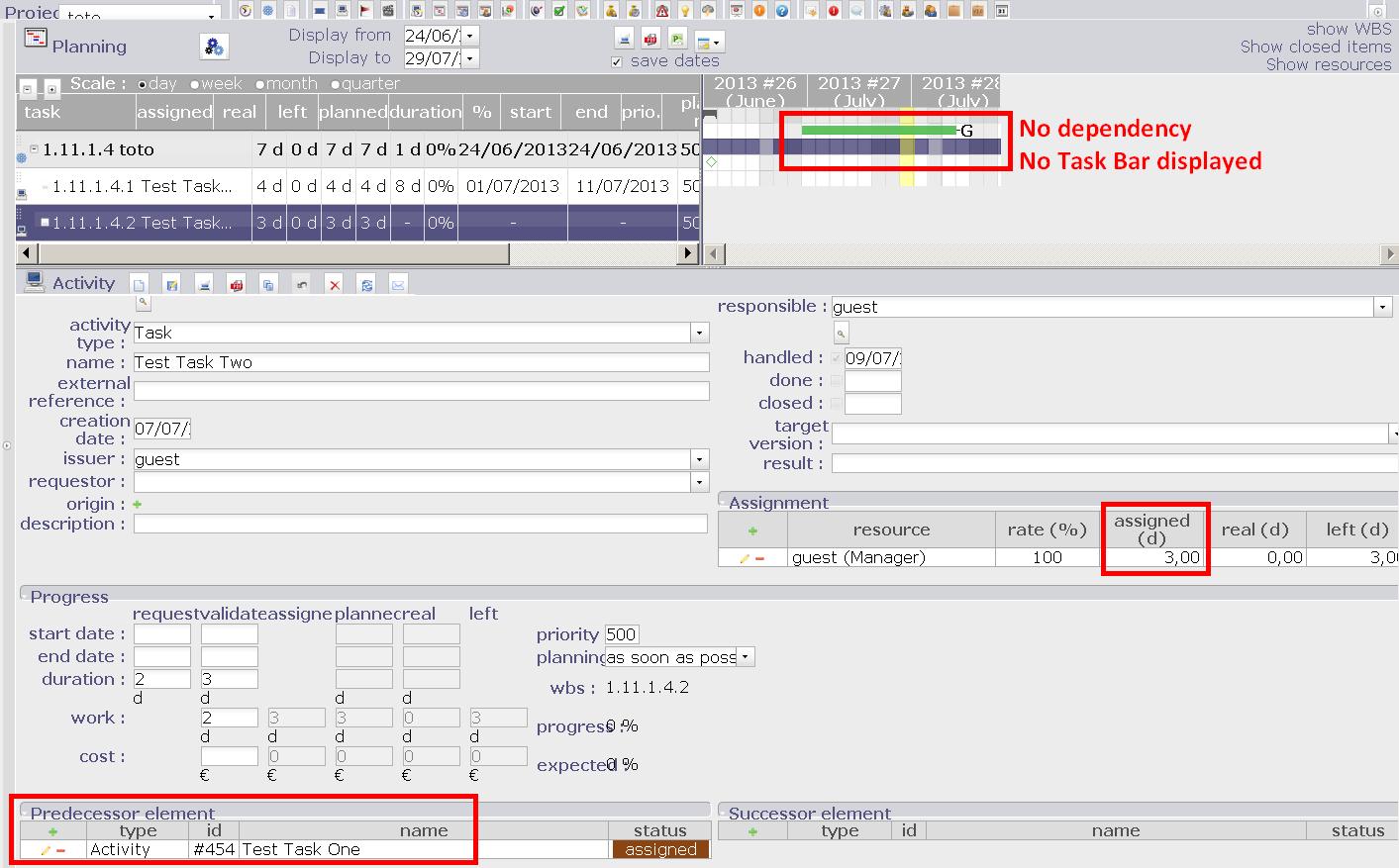 Thanks, unfortunately the display is still independent from the work. The Predecessor for example: I set 2d duration and 5d work, and the bar is 2d only; even if I set 50d work, it will still display 2d; if I do not set anything on the Progress start/end dates fields, it will not display anything (empty row).Well, I guess you understood quite well the philosophy of the tool, and things should run as you expect.