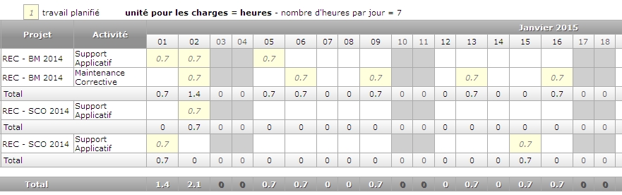 la charge affectée est de 75 heures sur l'année (01/01/2014 au 31/12/2014 => 253 jours)