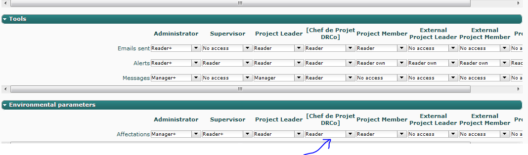 Access mode to data - "Reader" Acces mode not applied to Environmental parametters on projeqtor 4.5.6v