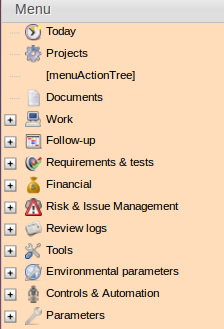 ProjeQtOr free project management software - Add new item in the left menu - ProjeQtOr