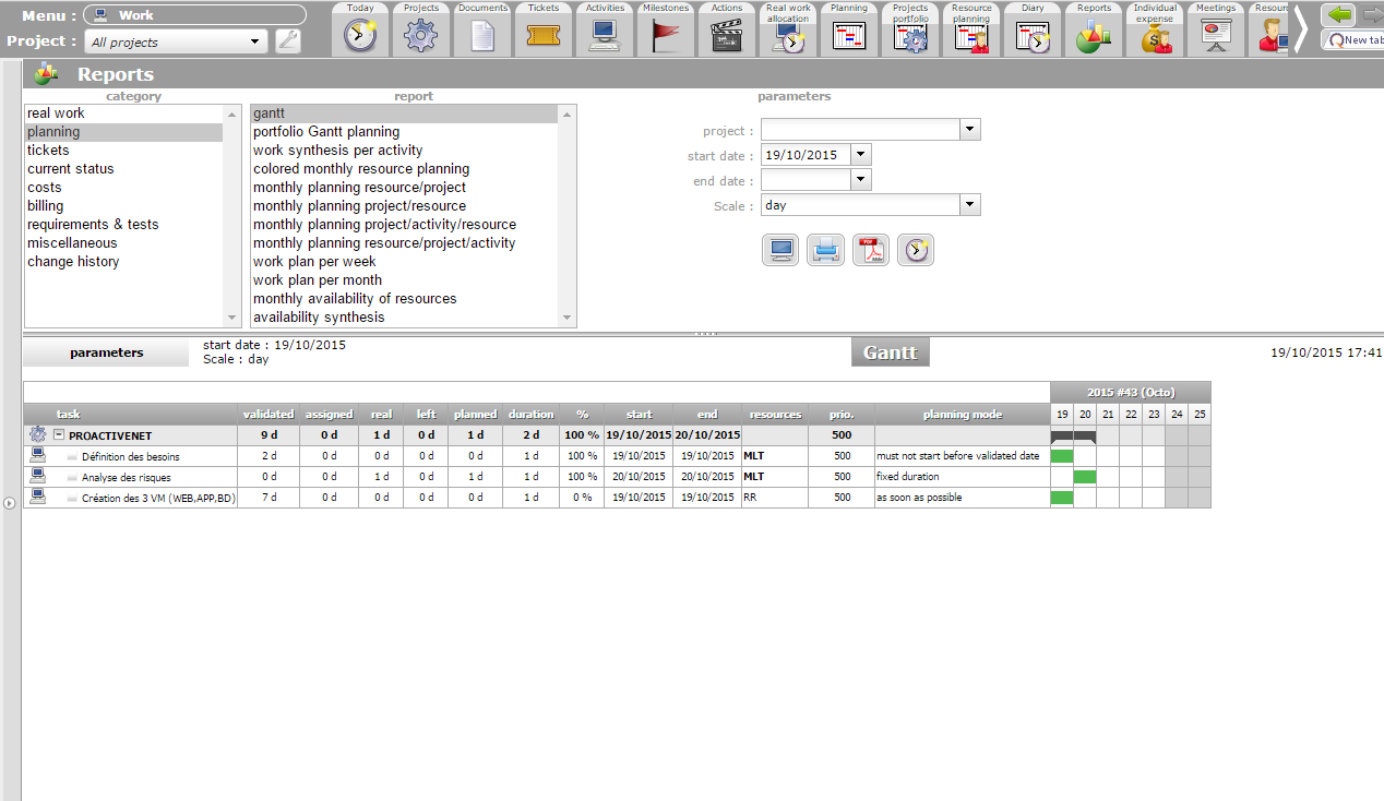 Notice that projector plan "left work" : you have no left work ,so nothing is planned.