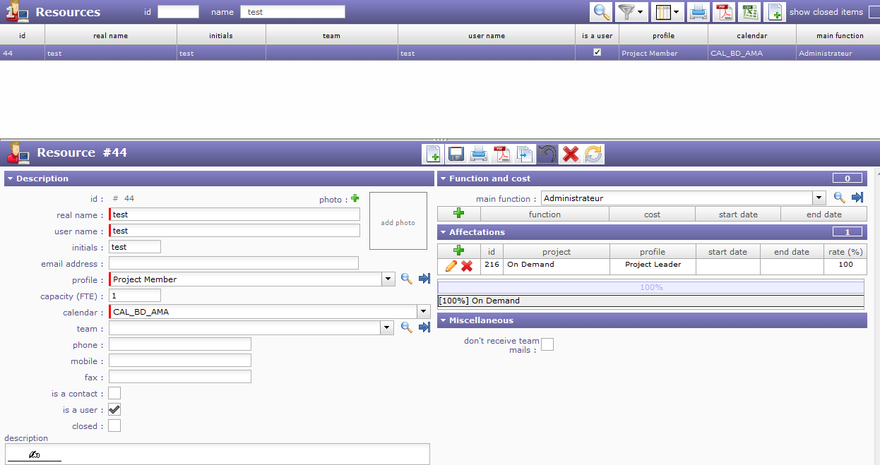 some ressources are Project Manager on few projects and sometimes team member on other projects