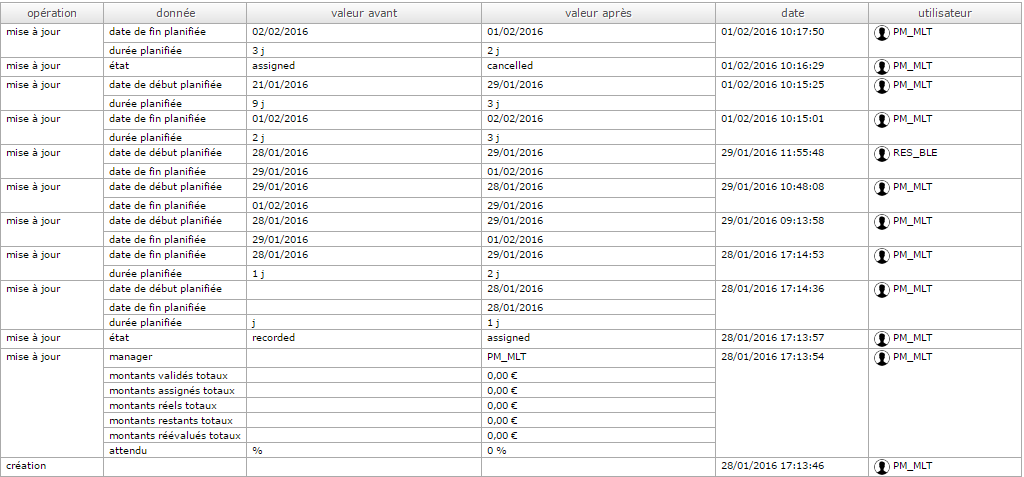 I checked the history and the historic displayed one line with my username as if I canceled this project (but I didn't canceled it, or at least, not with an update of the status).