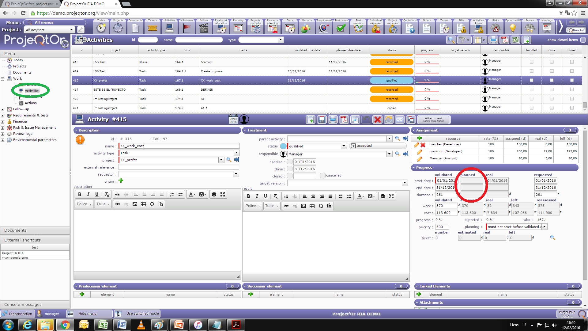 ProjeQtOr free project management software - How is filled the field planned start date in menu activity - ProjeQtOr