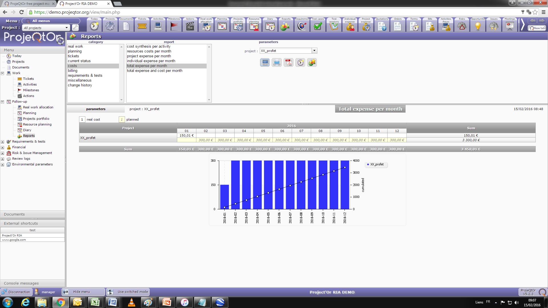 ProjeQtOr free project management software - Margin report - ProjeQtOr