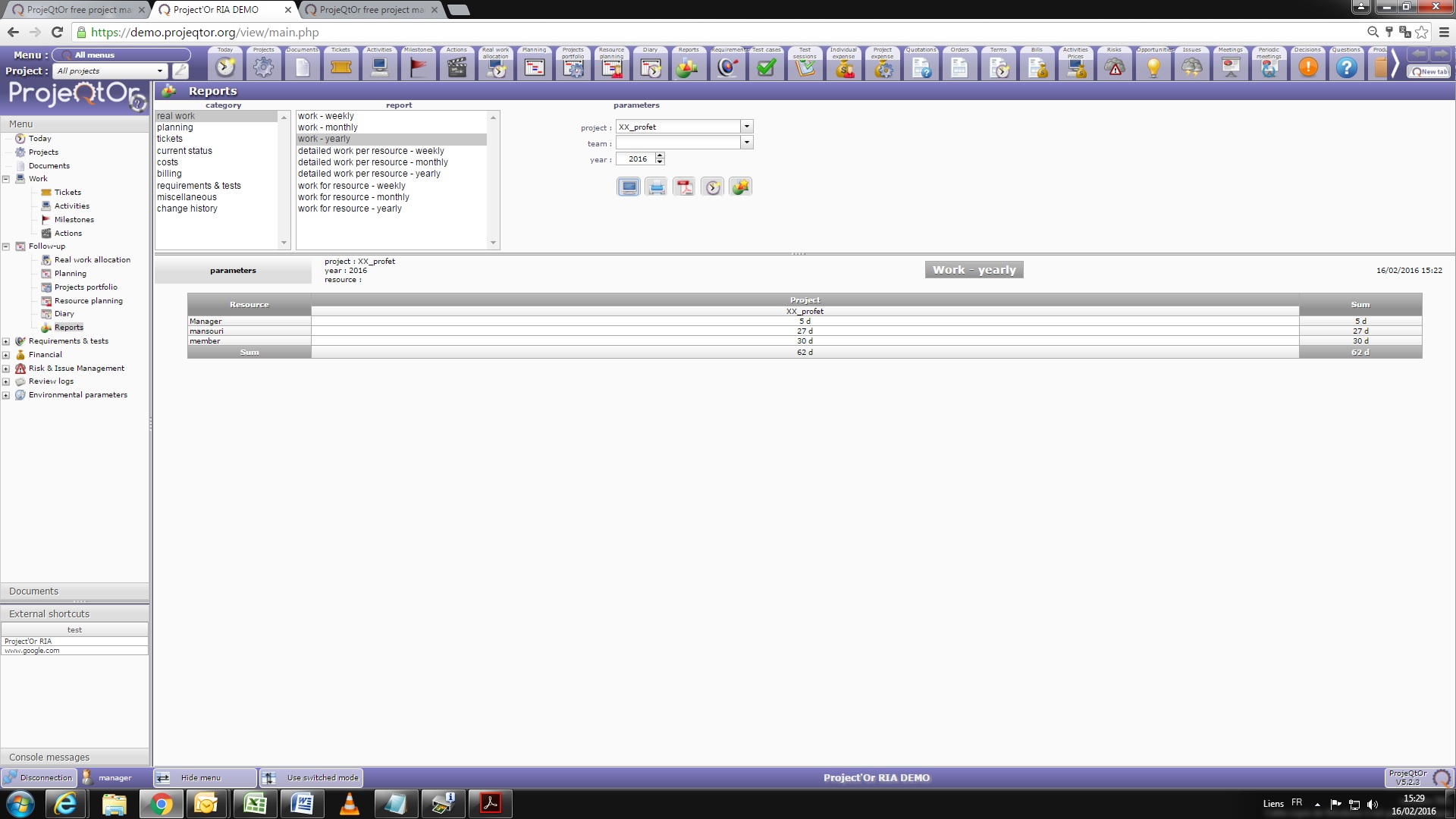 ProjeQtOr free project management software - Information about month for yearly report - ProjeQtOr