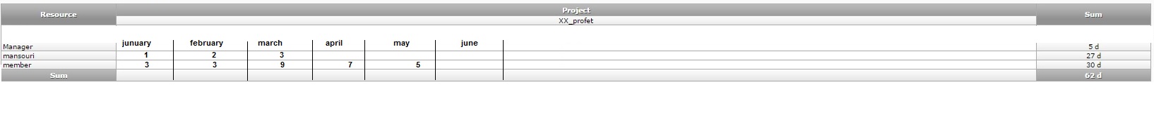 When you plot report about real work spend yearly by a resource (see attached, display copy). You have only the total day spend for the year. It would be interested to add colons that indicate the days spend by month (see the second example attached).