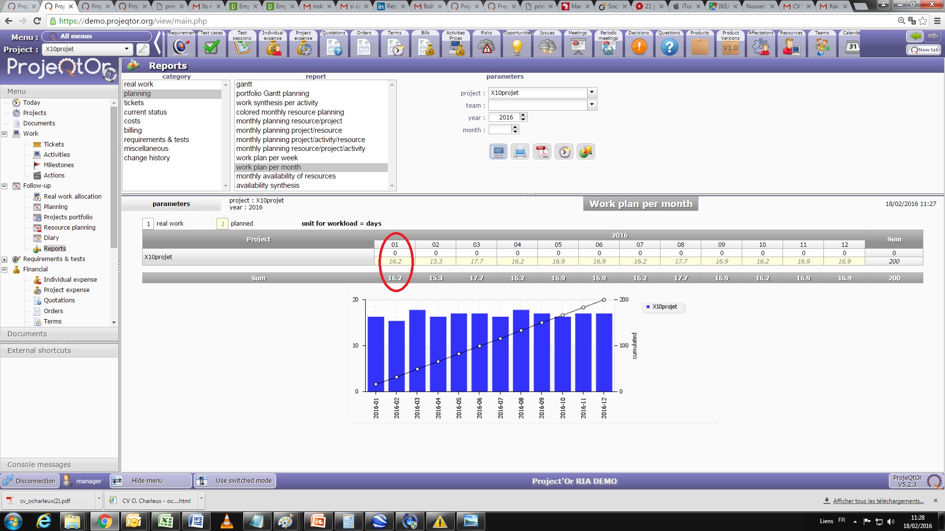 I define a project with regular planning. Before starting, the initial work plan per month give 16,2 days planned for January (see first copy display). When I keyboard real work allocation on January with 16 days of work for instance, there still are remaining planned days planned 3.8, why ? (see second copy display)
