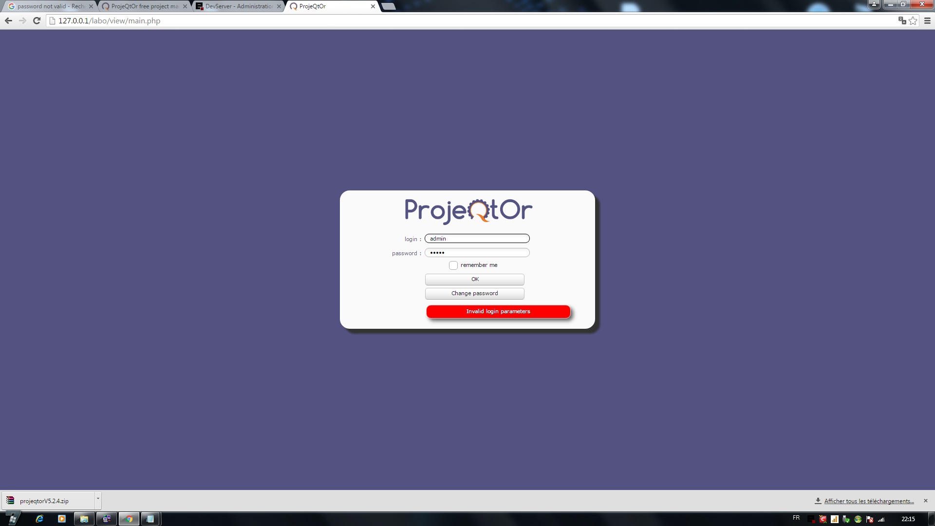 ProjeQtOr free project management software - password - ProjeQtOr