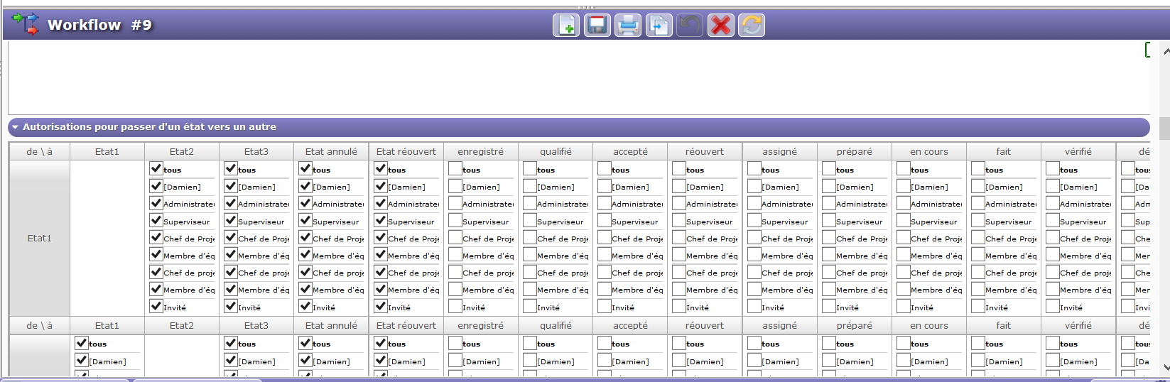 On the workflow screen, I see the new states (ordered first in my list) but the last states of the list don't appear anymore. There is no scrolling bar to see the state wich are "pushed" on the right of the screen (see image below).