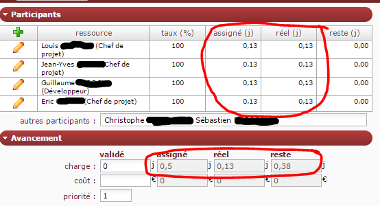 The meeting has been correctly created, assignment too, and real work entered for every resource. However, as you can see, the total real work is not equal to 0.5d but only 0.125d. Then the meeting can't be closed as there is still assigned work not consumed.
