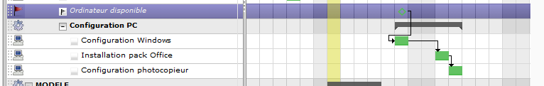 Can you try and create dependency from milstone to sub-project "Configuration PC" ? What is the result ?