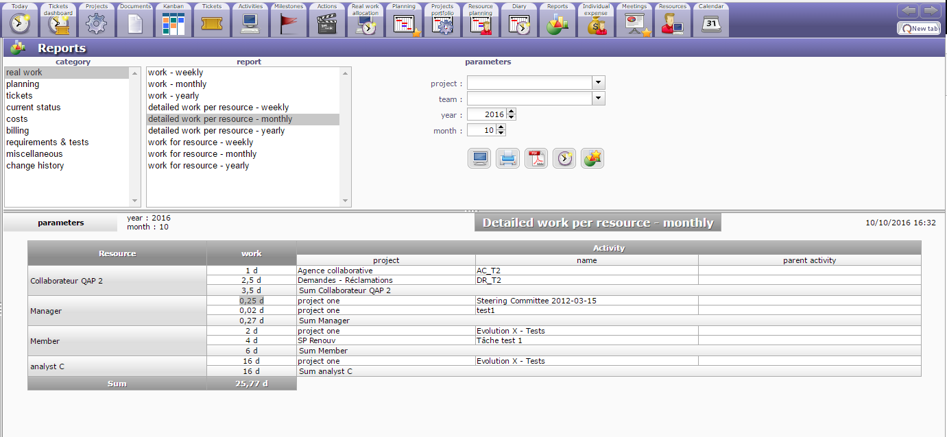 is there a easy way to view the days of projects worked by a resource?